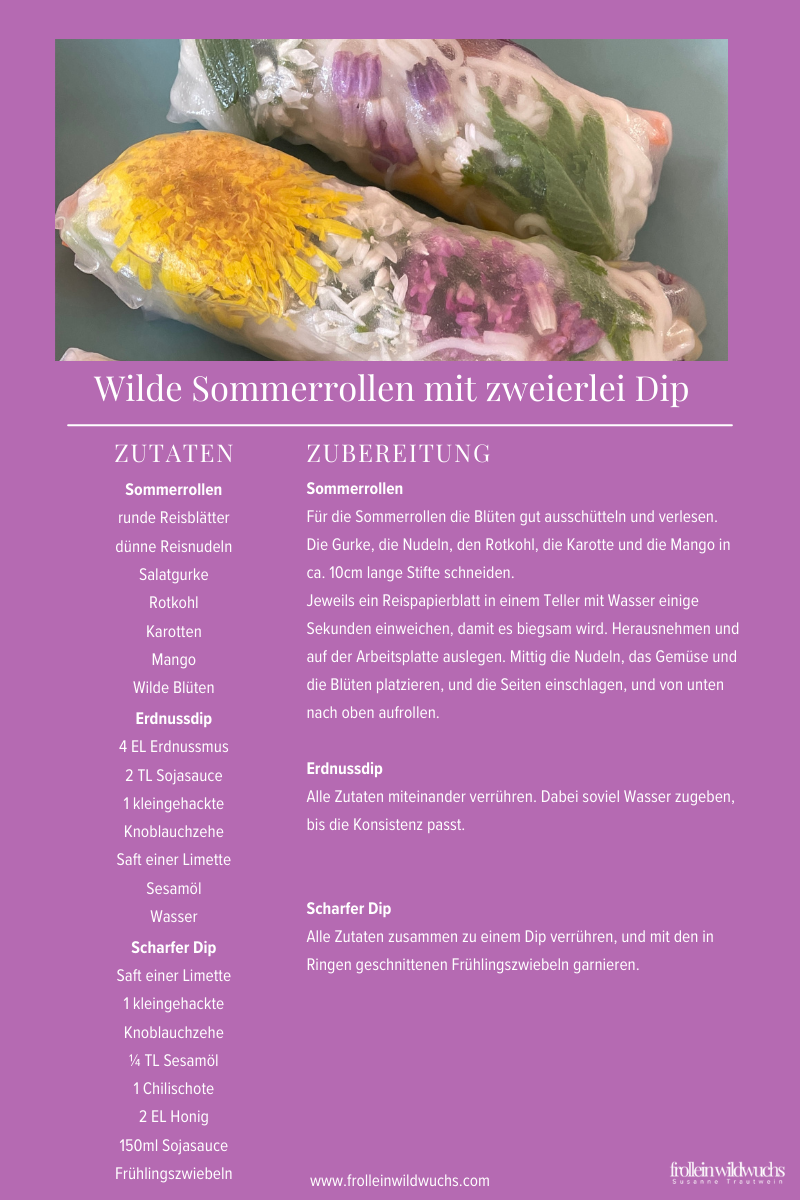 Also - grüne Schätze sammeln, Reispapier einweichen, schnibbeln, rollen und genießen. Der Frühling schmeckt heute wild und wunderbar!